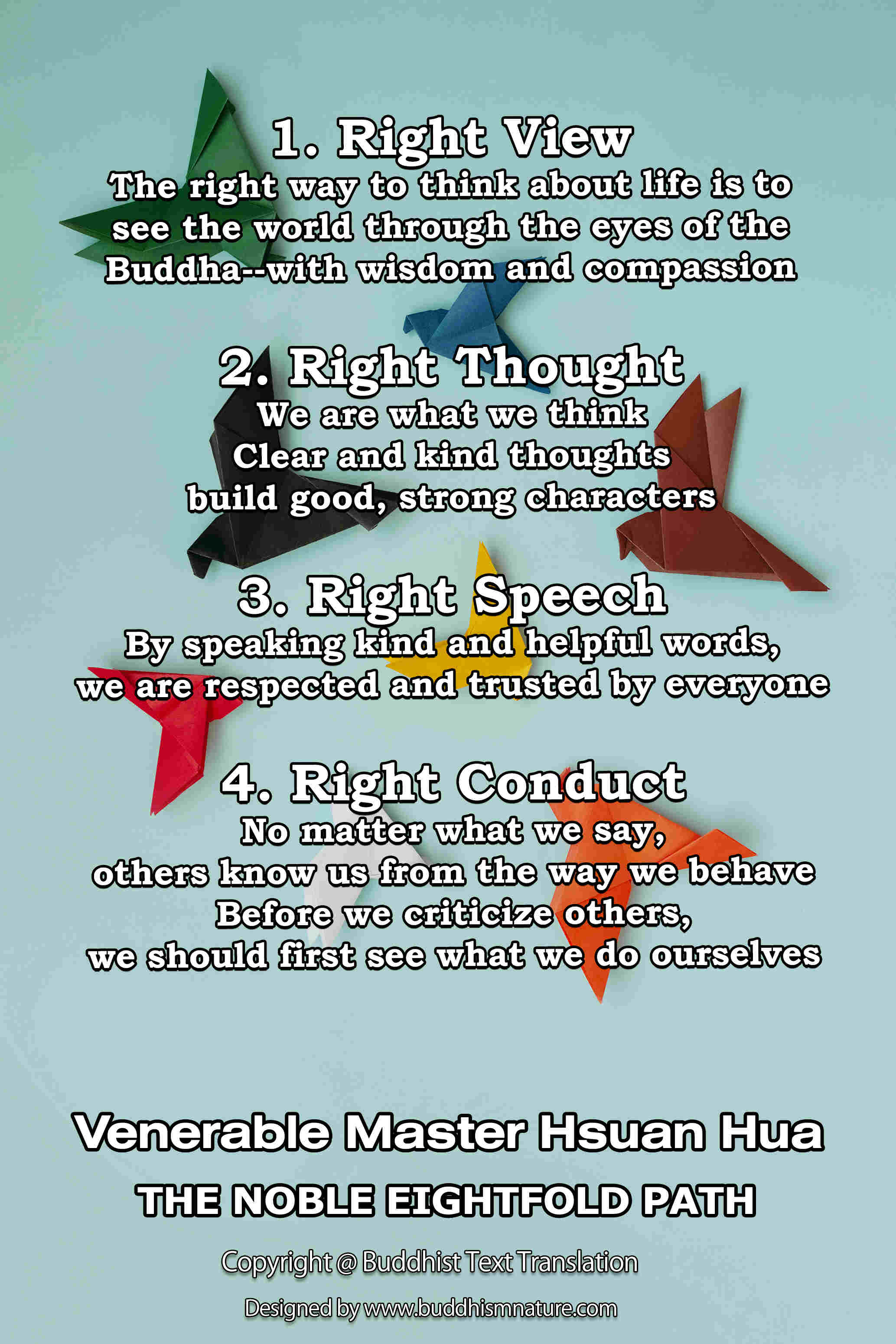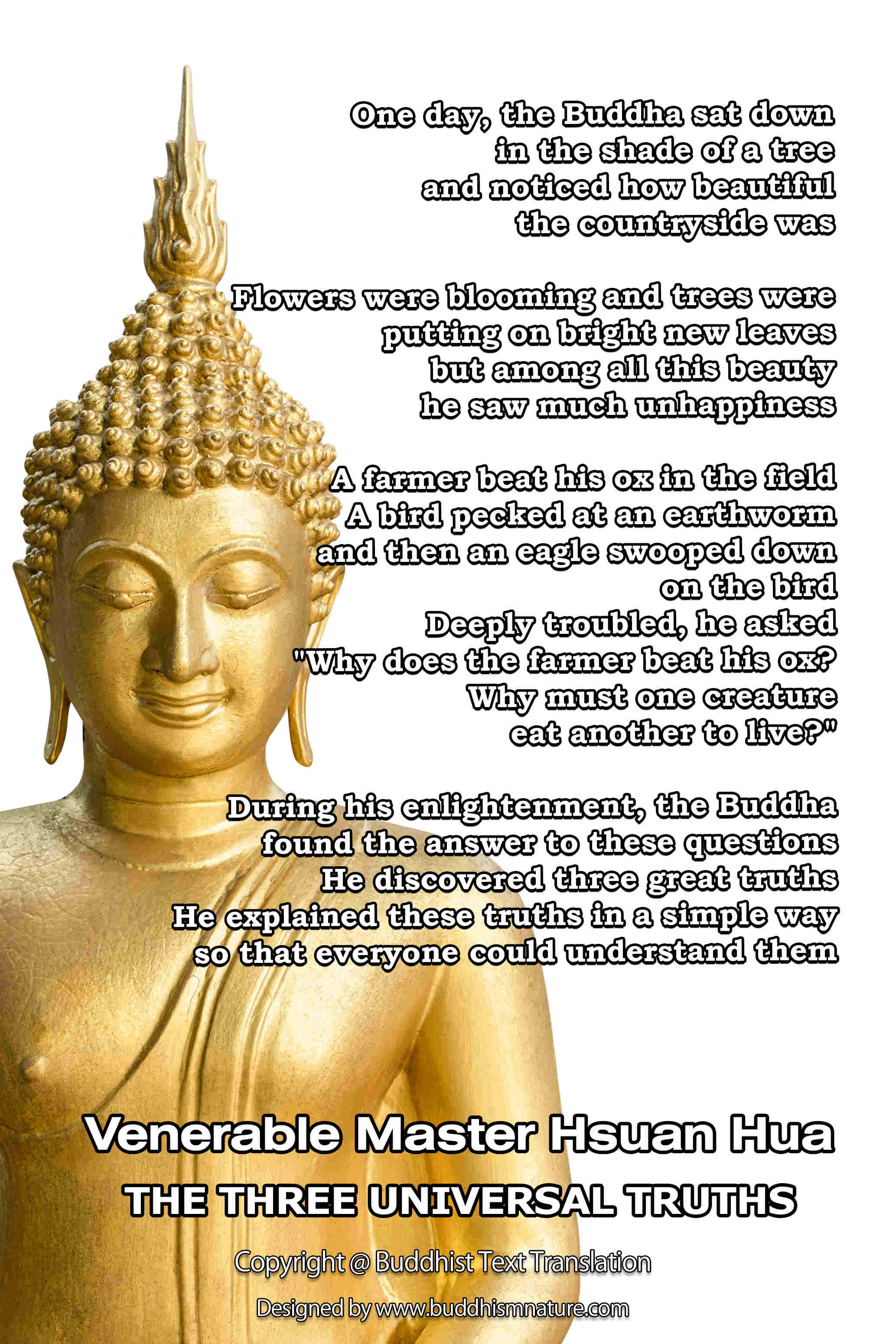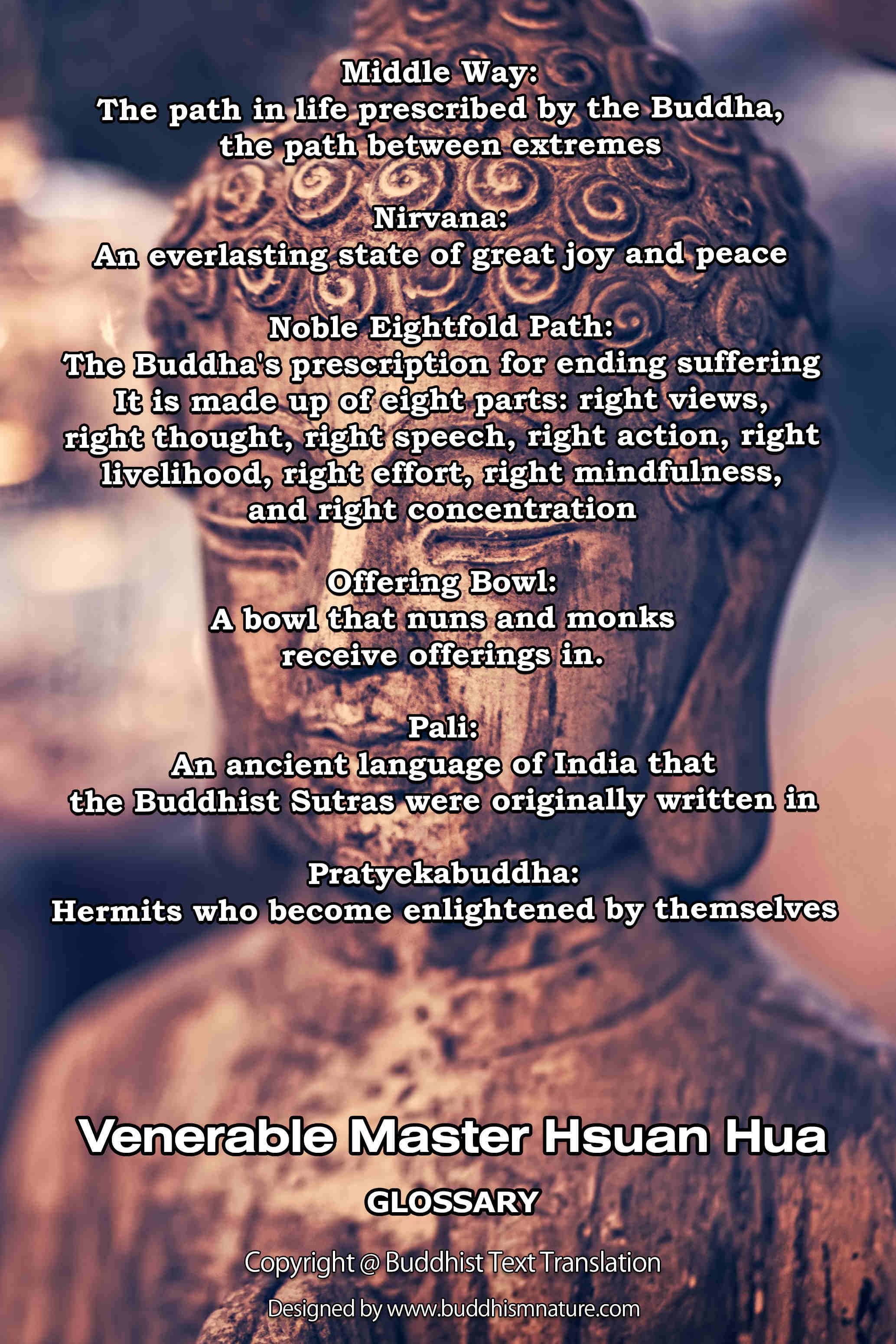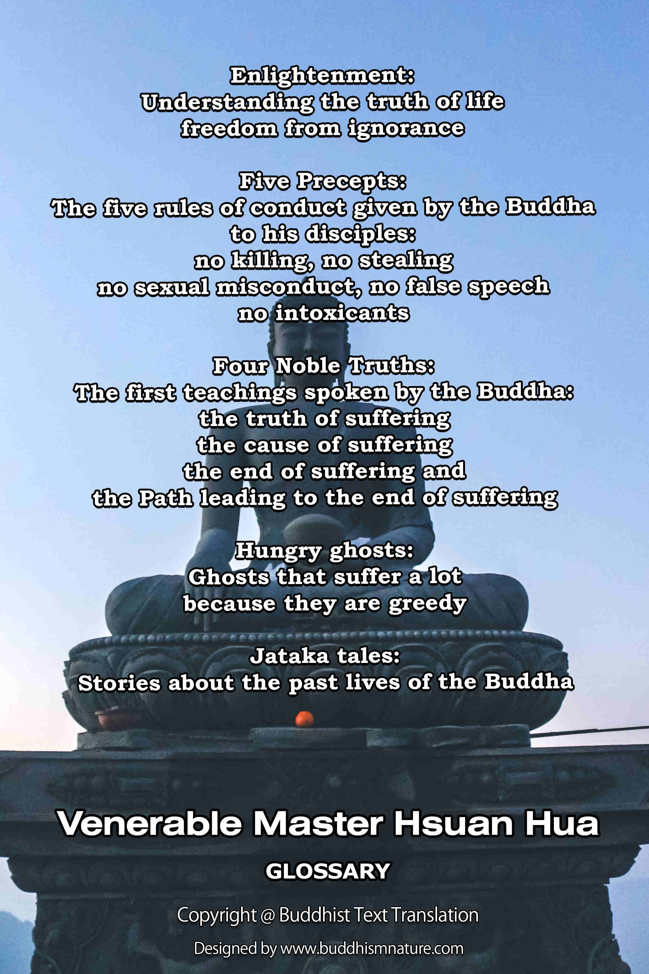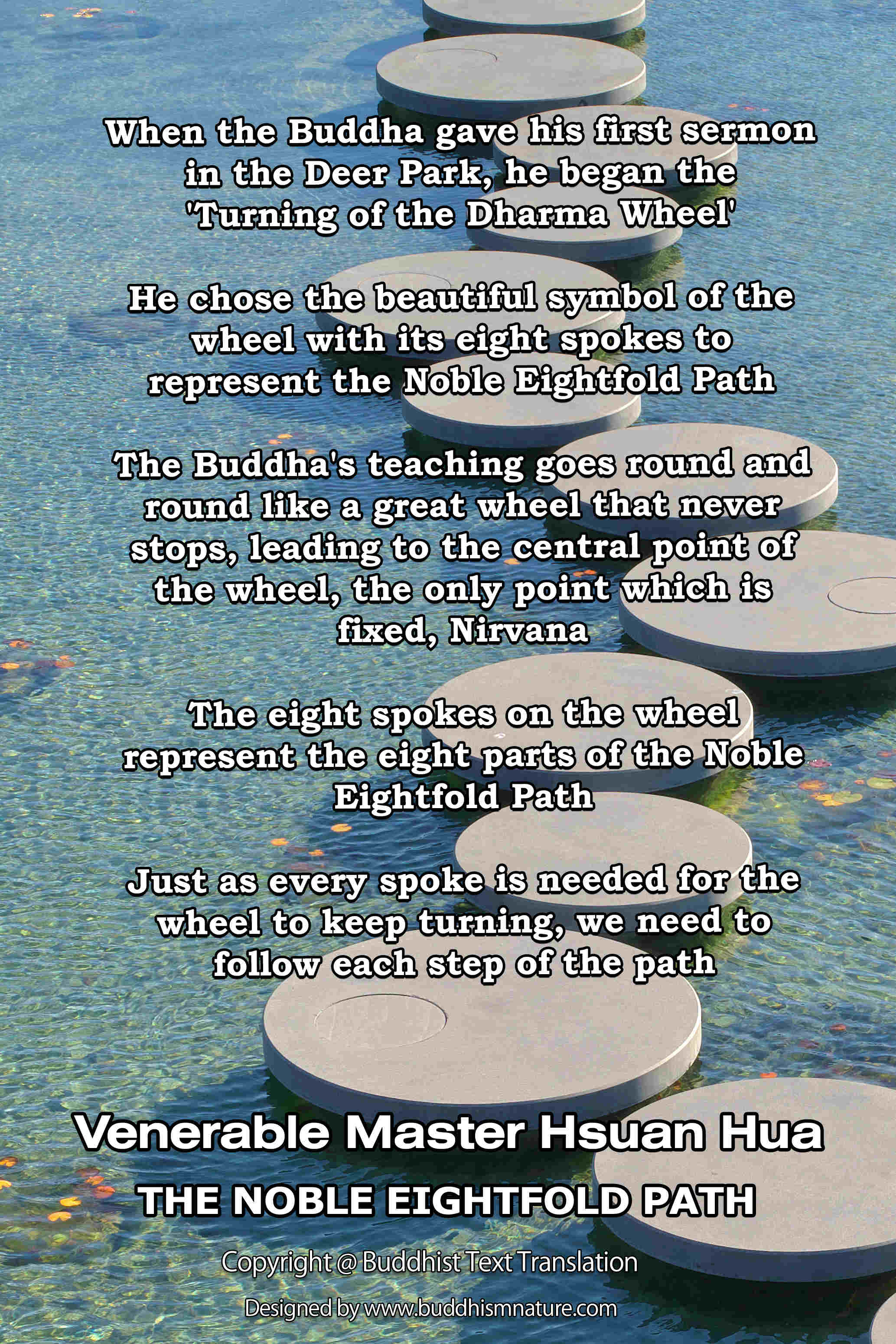 These quotes come from articles of 'Proper Dharma', 'Buddhism (Buddhadharma)', 'The LIfe of buddha', 'The Three Universal Truths', 'The Four Noble Truths', 'The Noble Eightfold Path', 'The Triple Jewel', 'The Five Precepts','The Wheel of Life', 'The Buddhist Community', 'Life in a Monastery', 'The Shaven Head, Robe and Offering Bowl', 'The Importance of Laity in Buddhism', 'Two Schools of Buddhism', 'Visiting Buddhist Temples', 'Buddhist Scriptures', 'Buddhist Symbols', 'Buddhist Festivals', 'History of Buddhism', 'Jataka Tales and Other Buddhist Stories', 'A Lesson in Meditation', 'Glossary', 'Quotations of Venerable Master Hua'