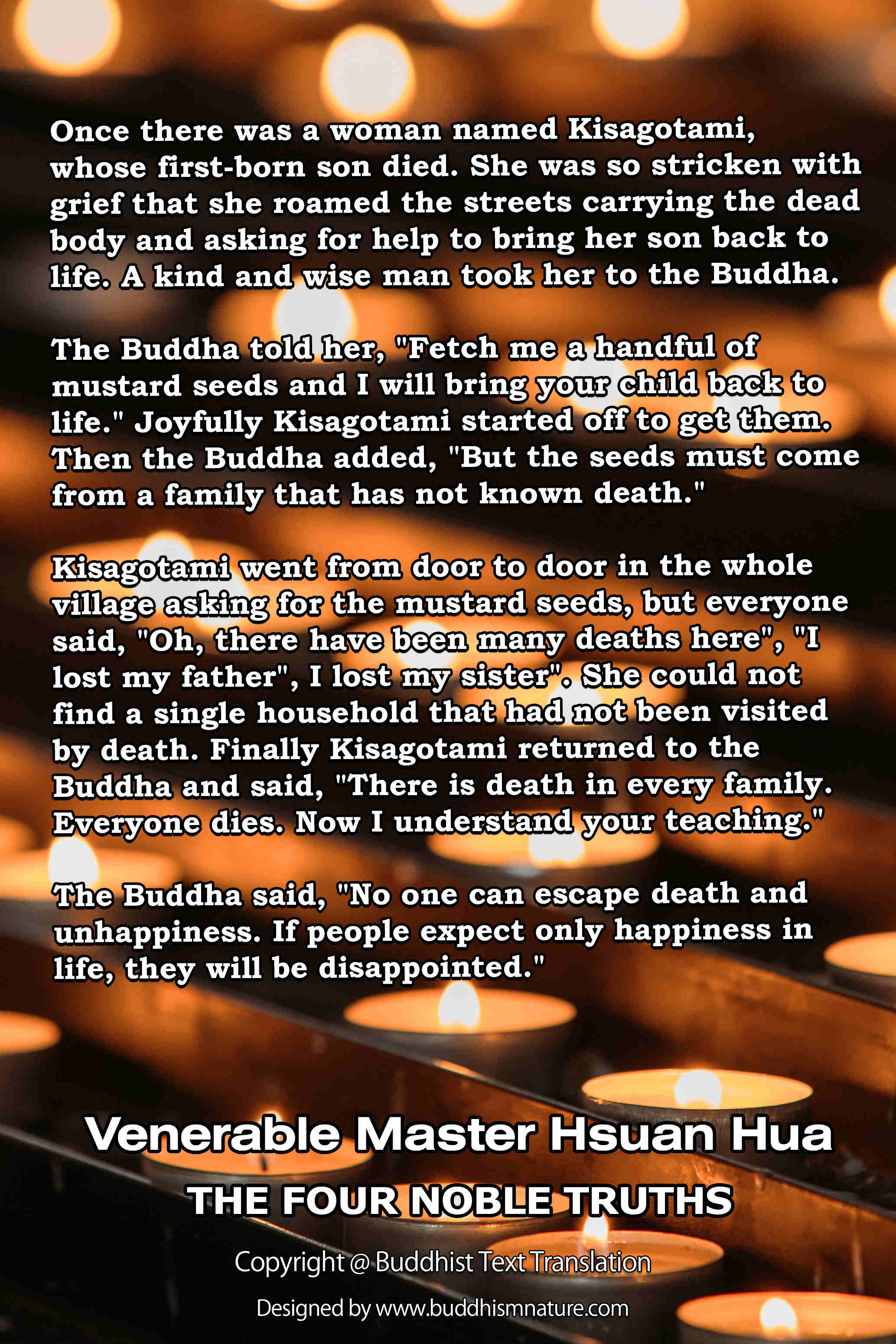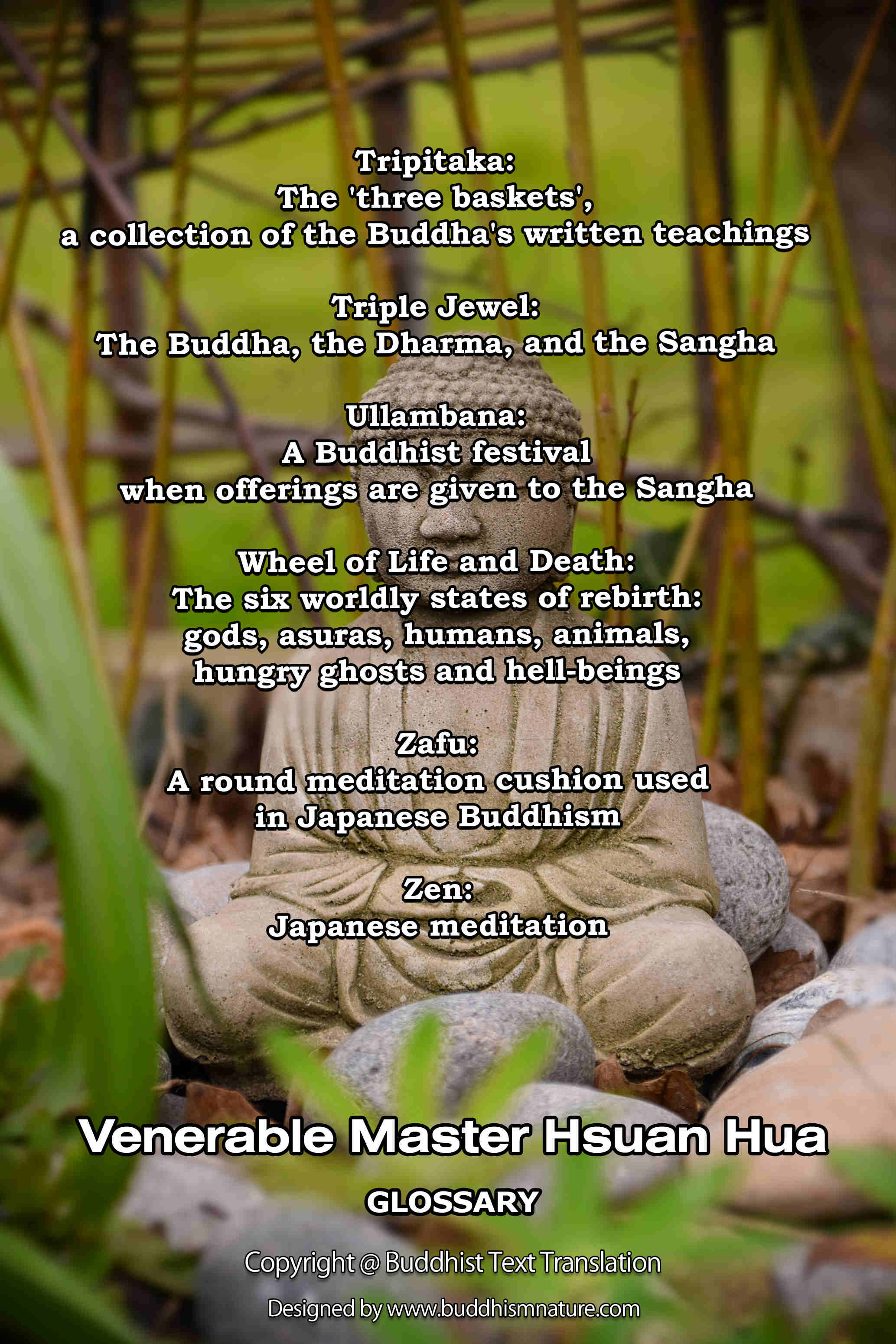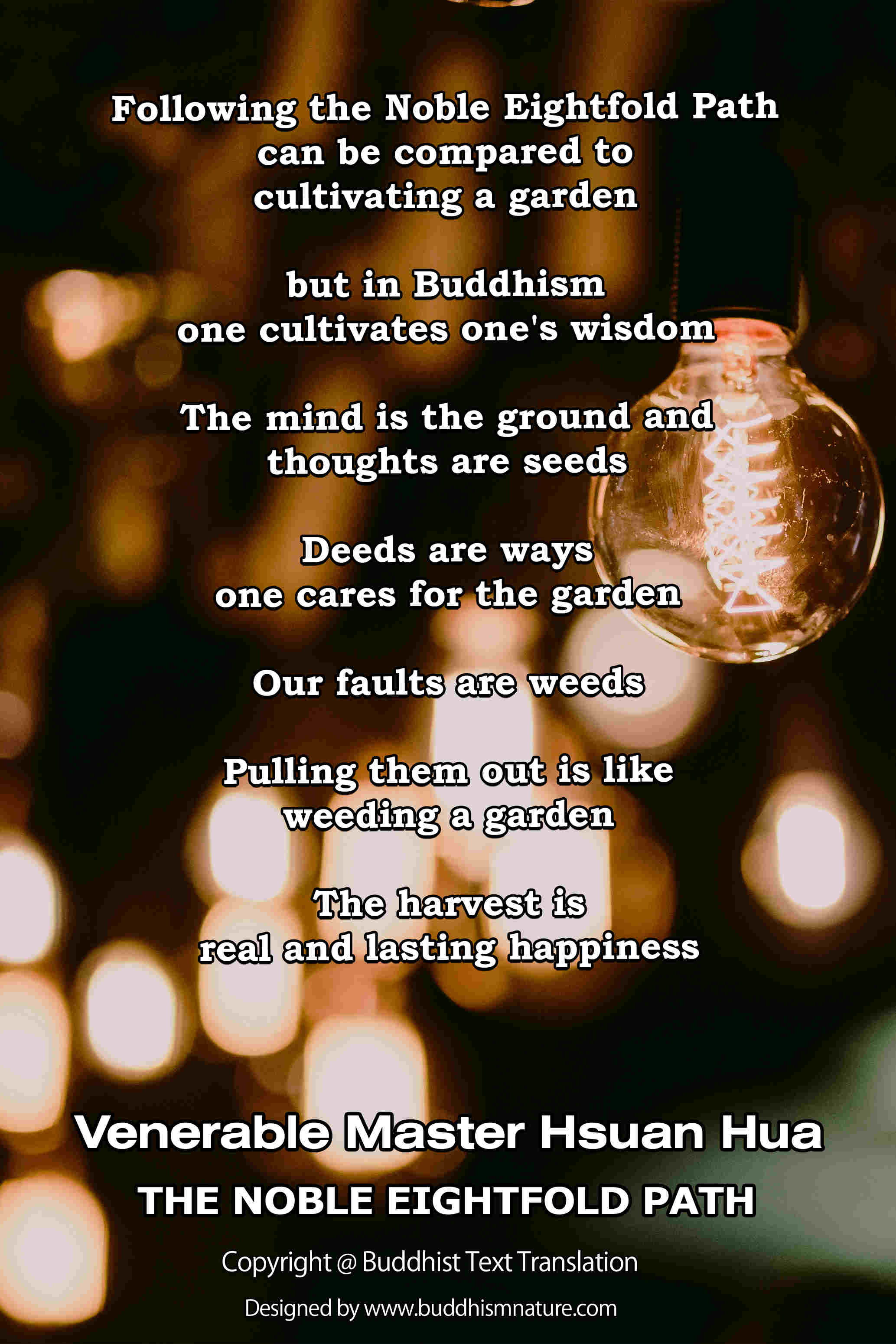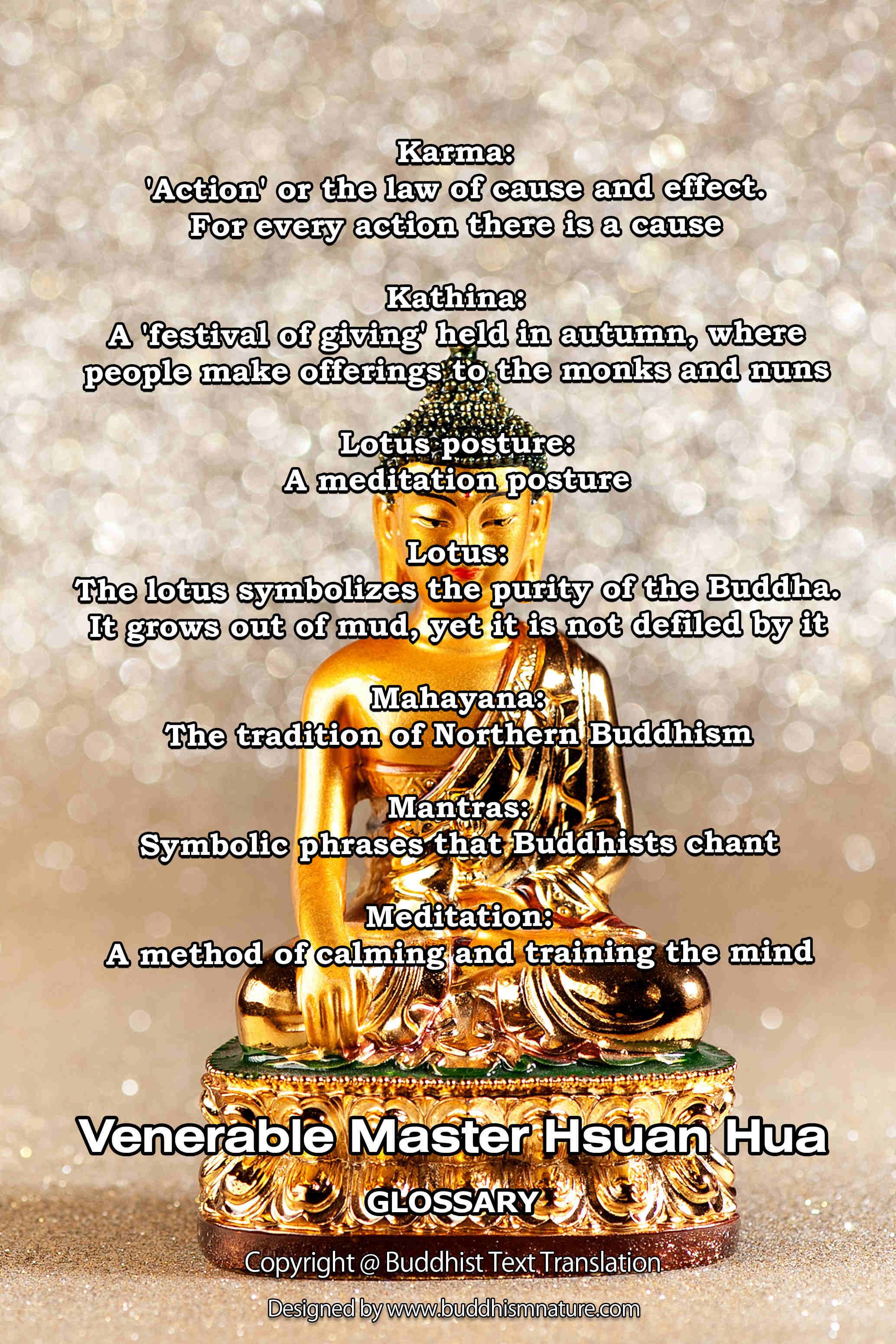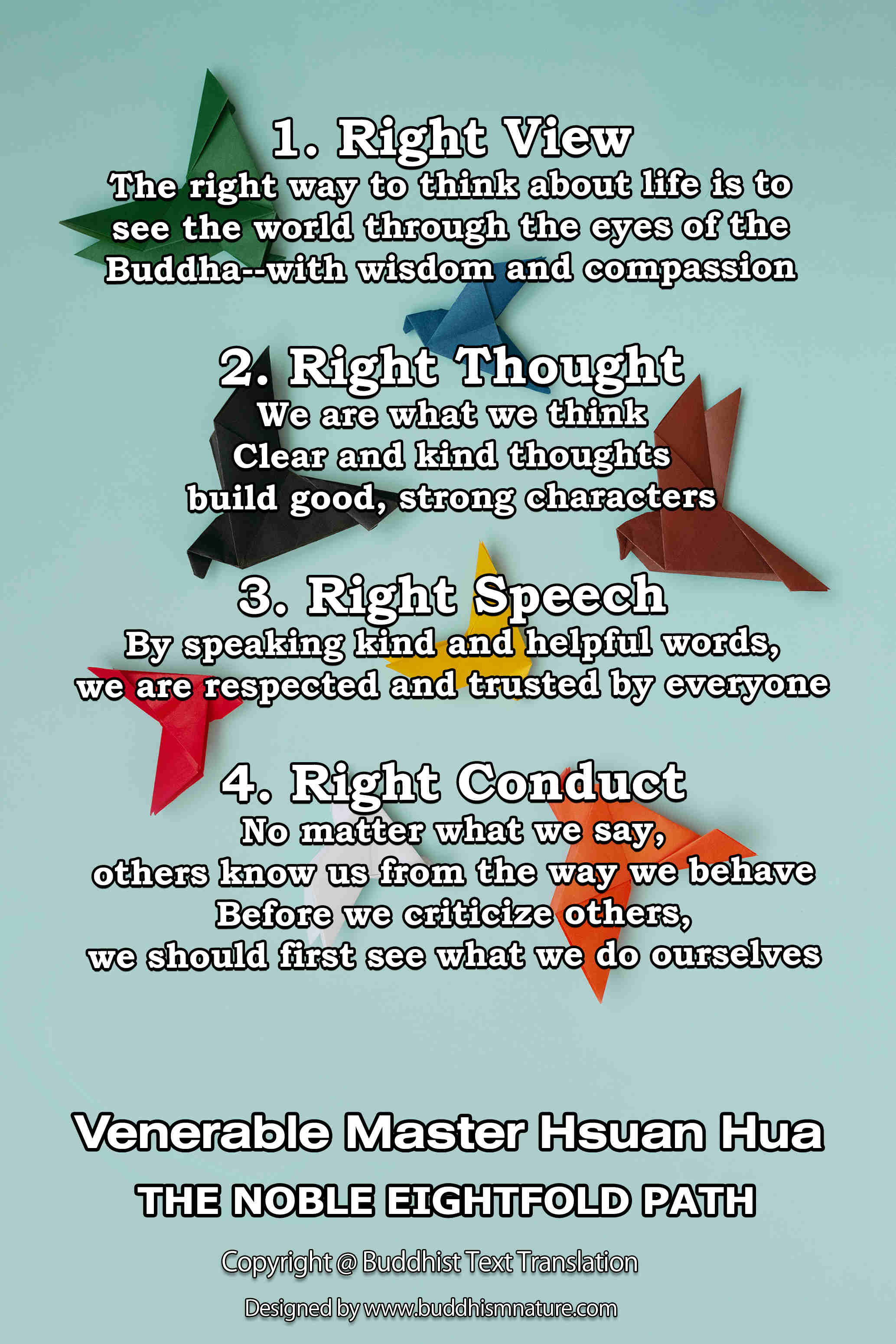 These quotes come from articles of 'Proper Dharma', 'Buddhism (Buddhadharma)', 'The LIfe of buddha', 'The Three Universal Truths', 'The Four Noble Truths', 'The Noble Eightfold Path', 'The Triple Jewel', 'The Five Precepts','The Wheel of Life', 'The Buddhist Community', 'Life in a Monastery', 'The Shaven Head, Robe and Offering Bowl', 'The Importance of Laity in Buddhism', 'Two Schools of Buddhism', 'Visiting Buddhist Temples', 'Buddhist Scriptures', 'Buddhist Symbols', 'Buddhist Festivals', 'History of Buddhism', 'Jataka Tales and Other Buddhist Stories', 'A Lesson in Meditation', 'Glossary', 'Quotations of Venerable Master Hua'