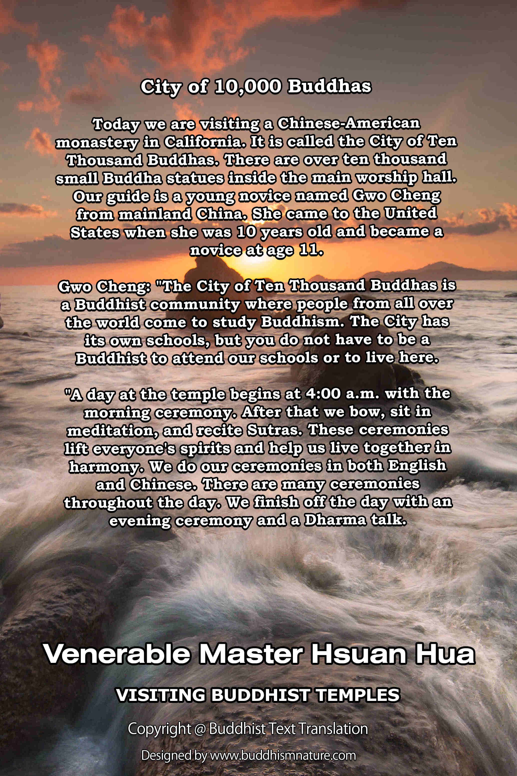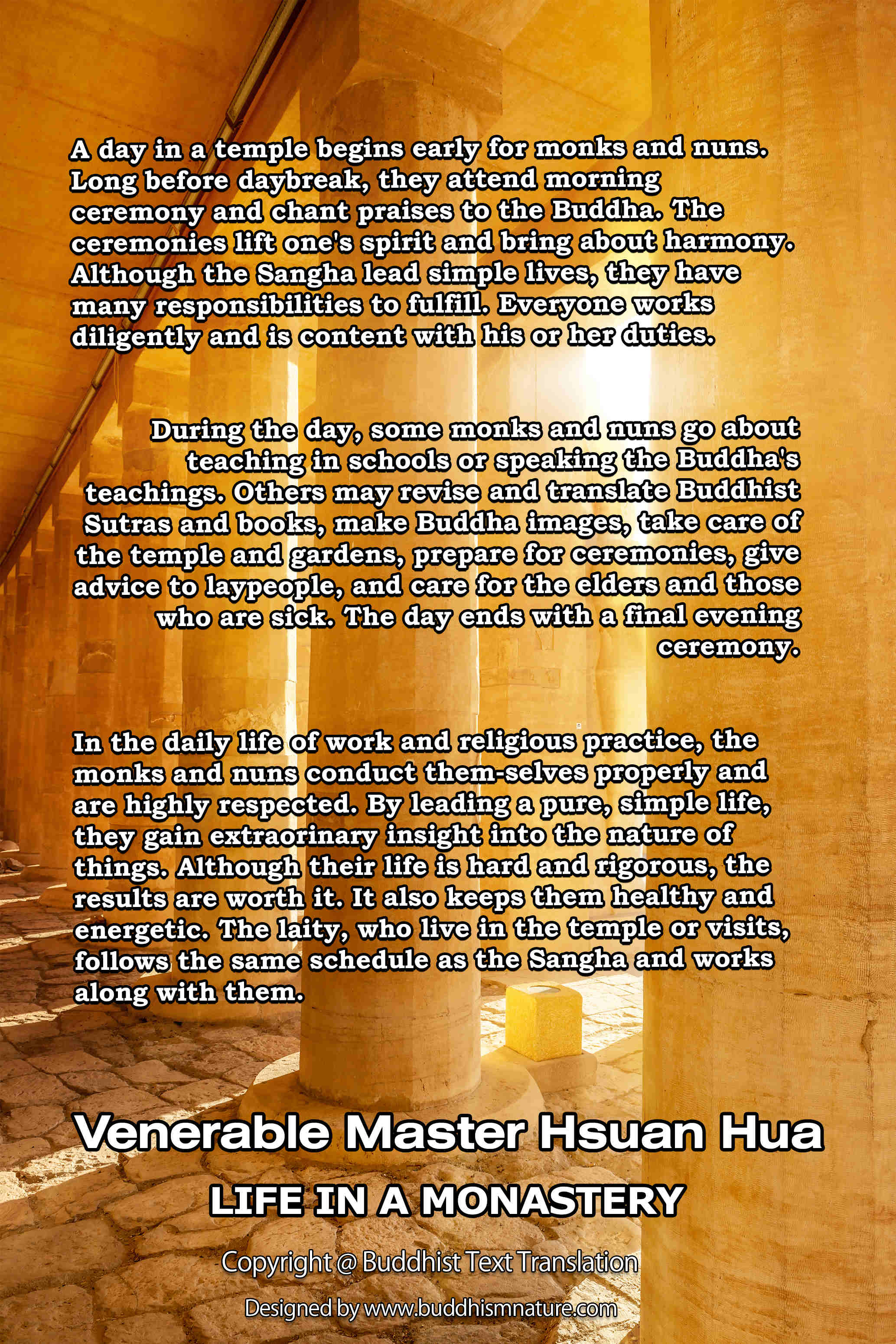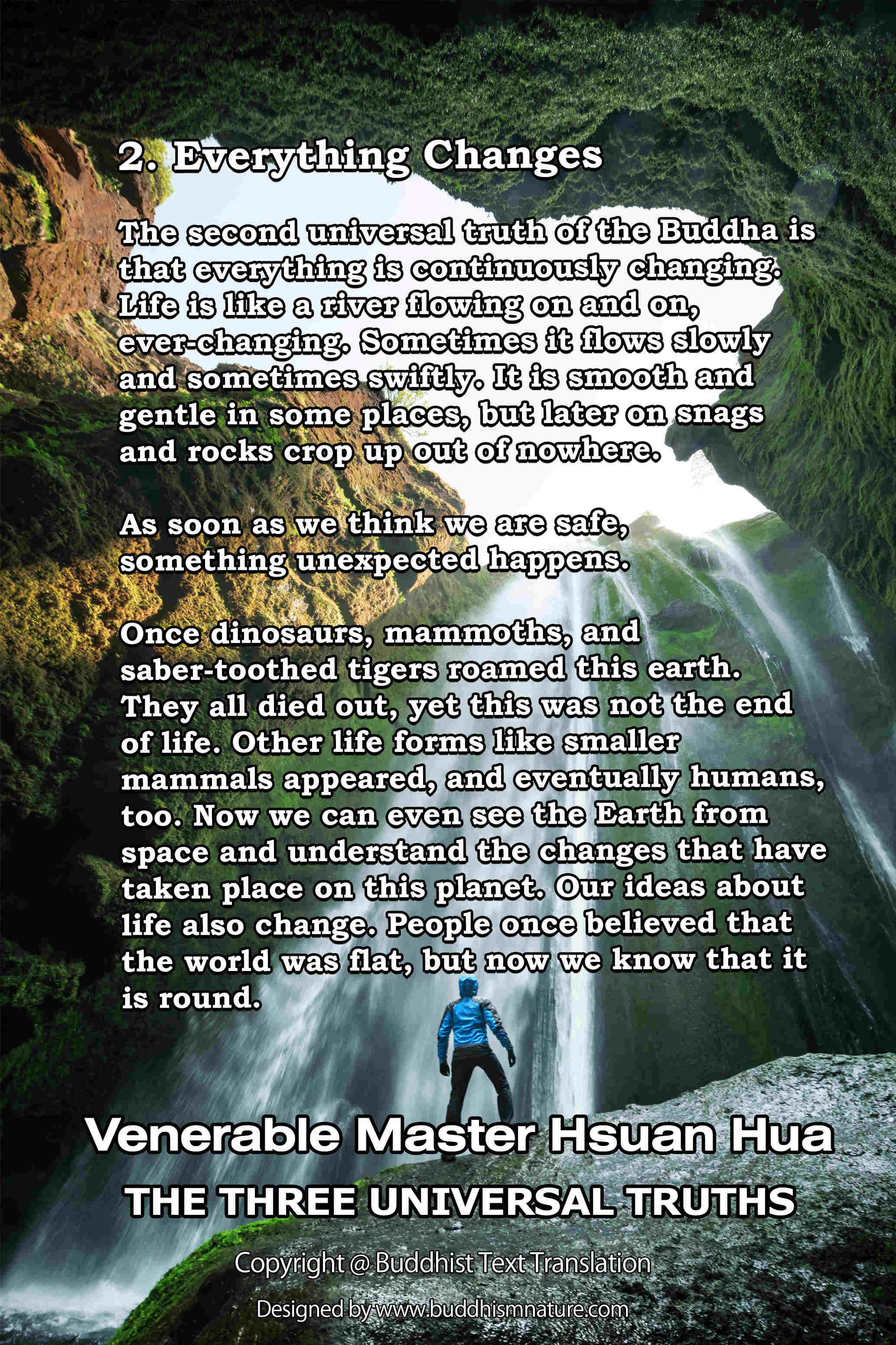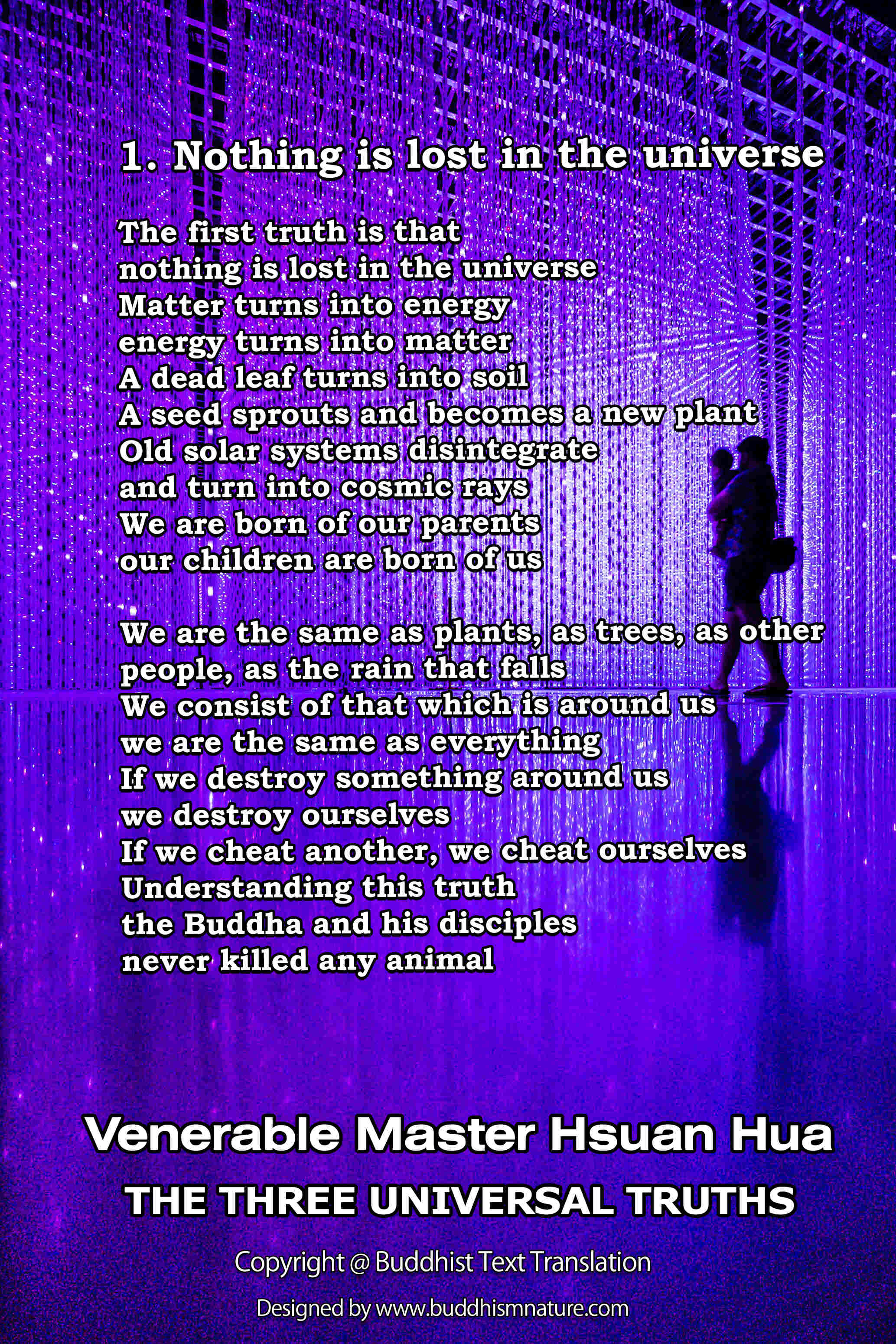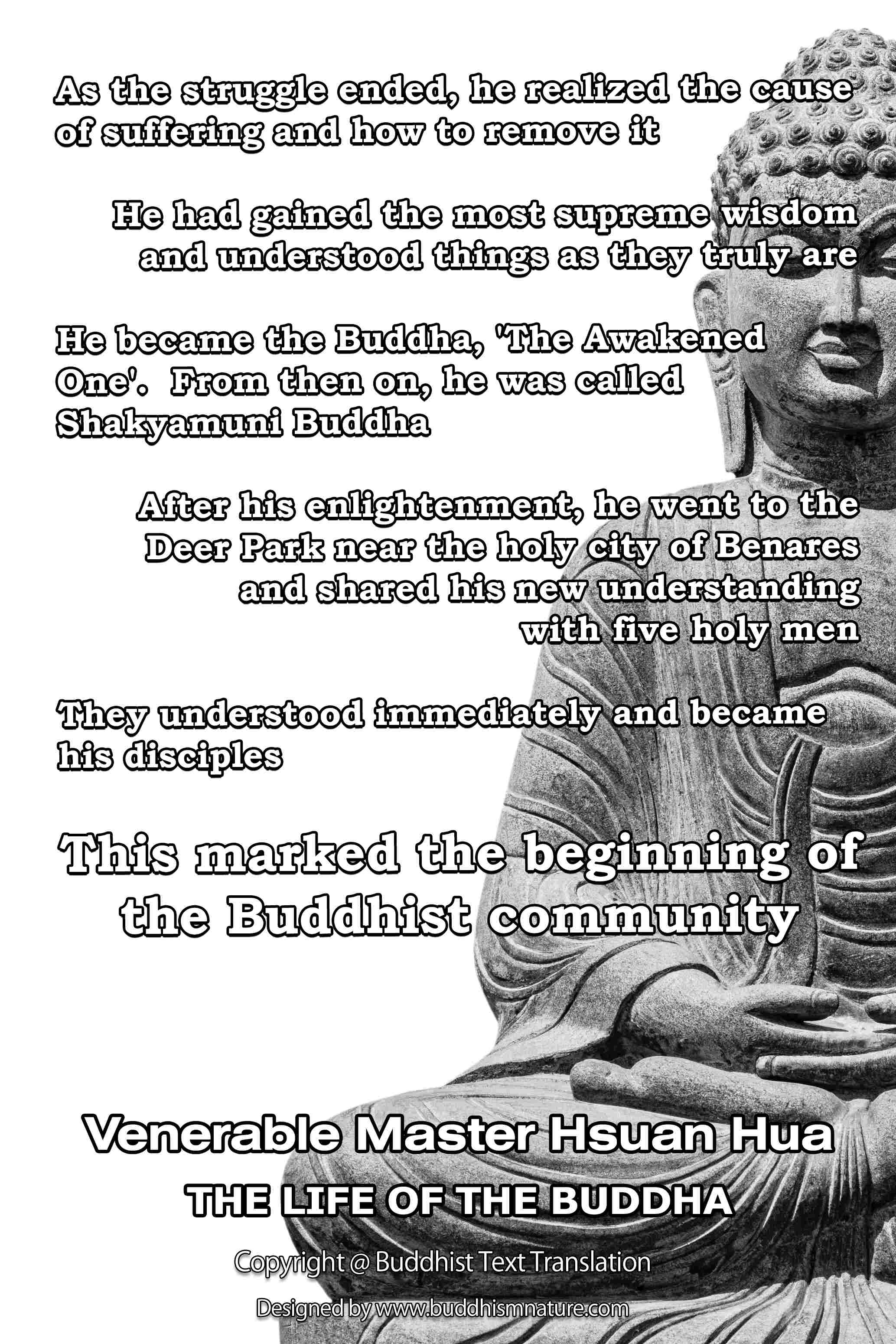 These quotes come from articles of 'Proper Dharma', 'Buddhism (Buddhadharma)', 'The LIfe of buddha', 'The Three Universal Truths', 'The Four Noble Truths', 'The Noble Eightfold Path', 'The Triple Jewel', 'The Five Precepts','The Wheel of Life', 'The Buddhist Community', 'Life in a Monastery', 'The Shaven Head, Robe and Offering Bowl', 'The Importance of Laity in Buddhism', 'Two Schools of Buddhism', 'Visiting Buddhist Temples', 'Buddhist Scriptures', 'Buddhist Symbols', 'Buddhist Festivals', 'History of Buddhism', 'Jataka Tales and Other Buddhist Stories', 'A Lesson in Meditation', 'Glossary', 'Quotations of Venerable Master Hua'